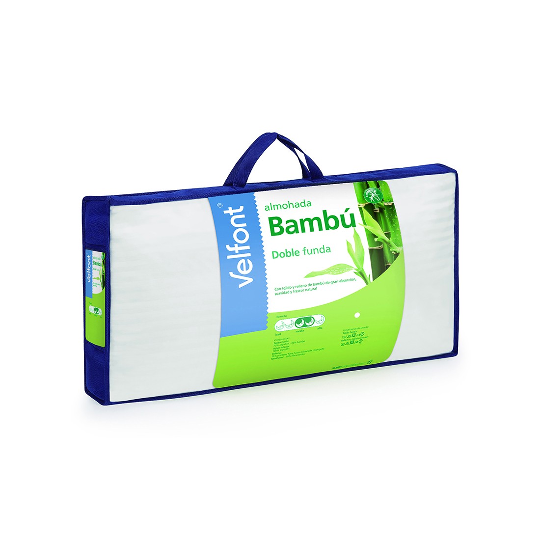 Esta almohada incorpora una doble funda confeccionada con bambú 100% de gran calidad, transpirable y muy absorbente que, además, tiene un bonito diseño listado. Añadir que el bambú es la planta de mayor regeneración del planeta y, por tanto, es un recurso ecológico y sostenible. Gracias a su cierre con cremallera, es de fácil extracción para su correcto lavado y mantenimiento.