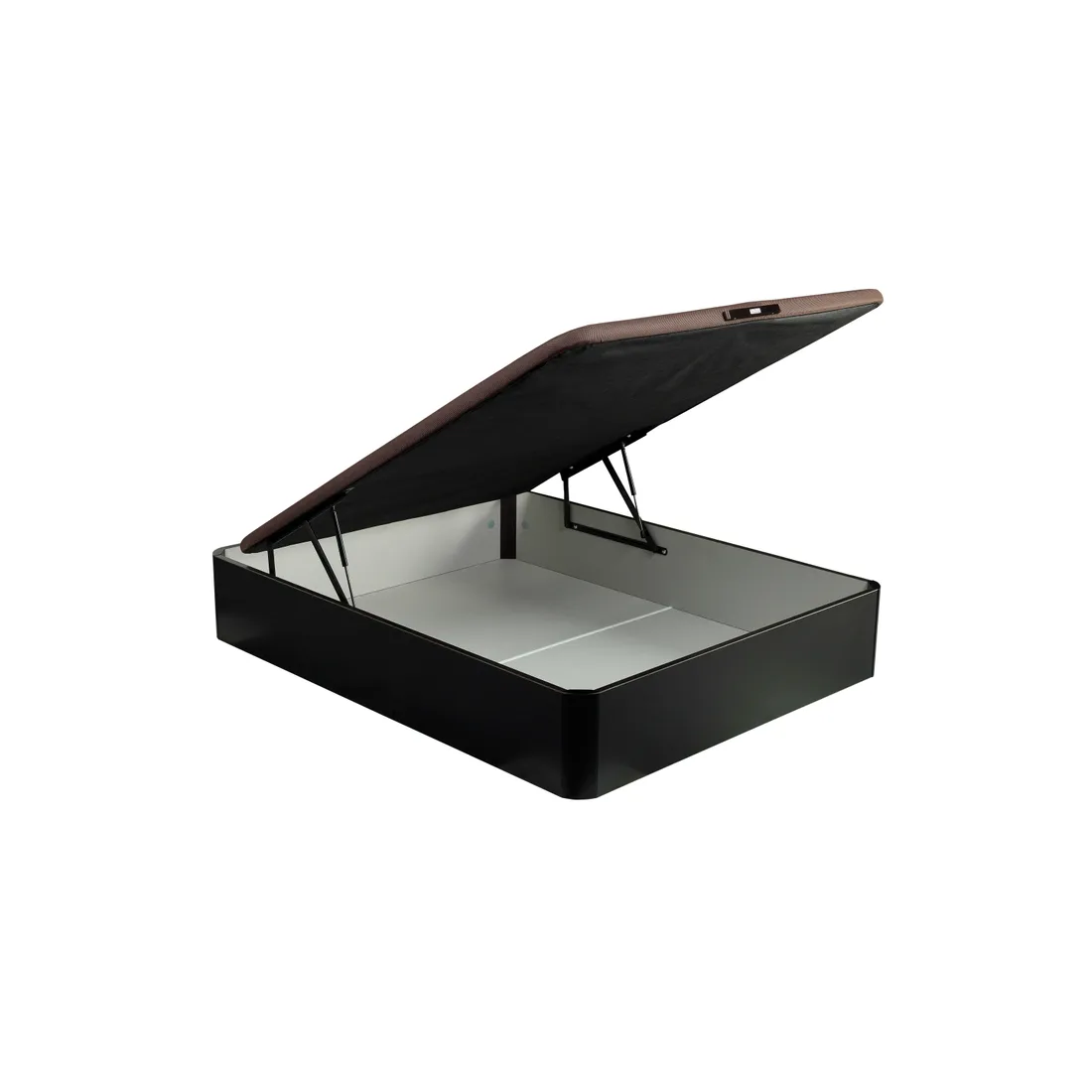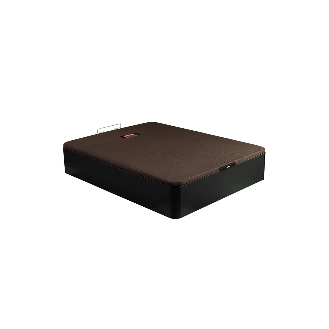 La cubeta está construida con laminados de 25 mm de espesor tanto en el interior como en el exterior. Sus cuatro esquinas de madera maciza añaden durabilidad y estabilidad. Posee en su diseño líneas rectas en el cabecero y curvas en el piecero para un acabado estéticamente mas atractivo. Este canapé cuenta con 36cm de altura al suelo de los cuales 30cm son integramente dedicados a almacenaje.