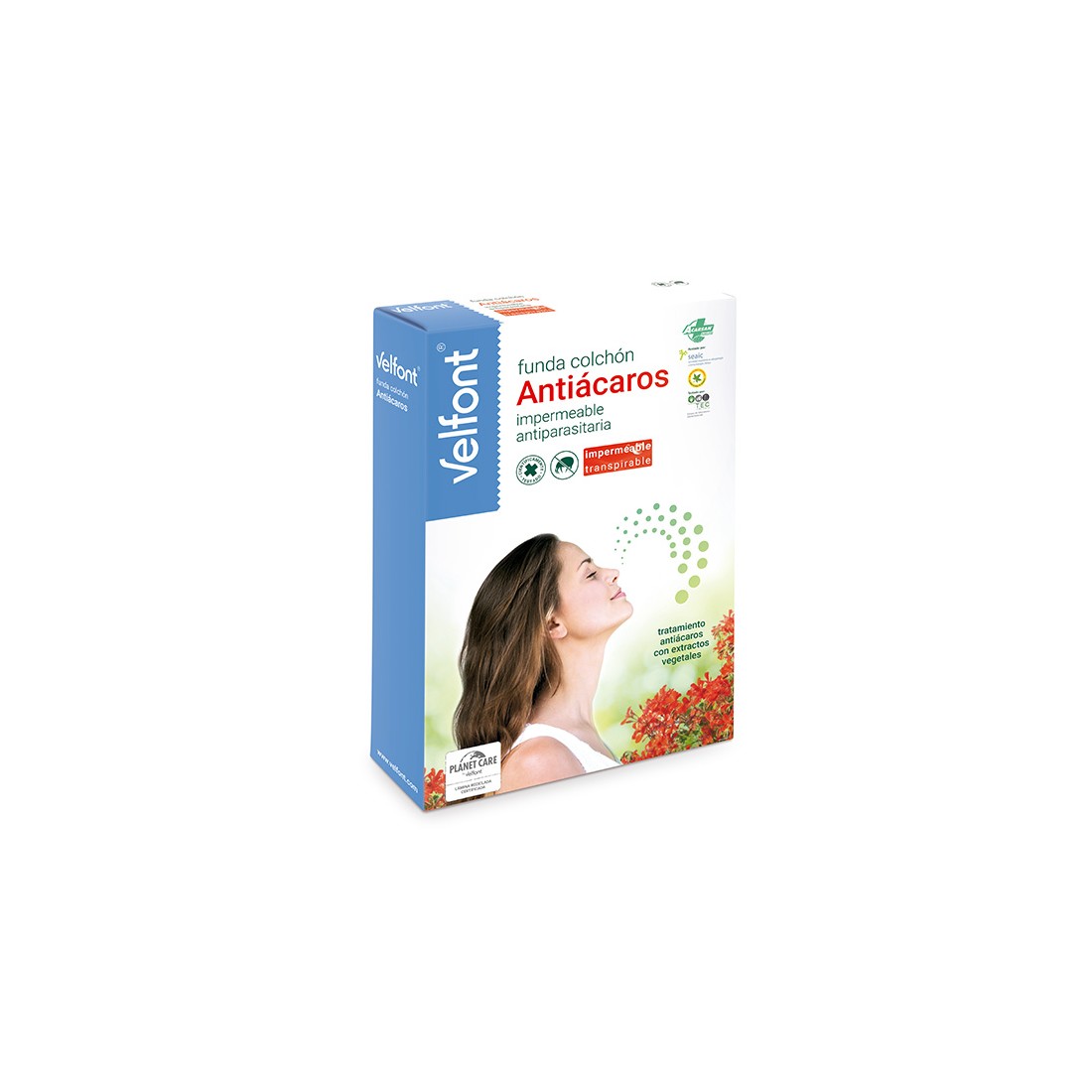 La funda de colchón antiácaros impermeable y transpirable está confeccionada con tejido de alta calidad que incorpora el tratamiento antiácaros Acarsan Natural® elaborado con extractos vegetales. Ha sido científicamente testado y conserva sus propiedades tras sucesivos lavados para una protección óptima durante el descanso.